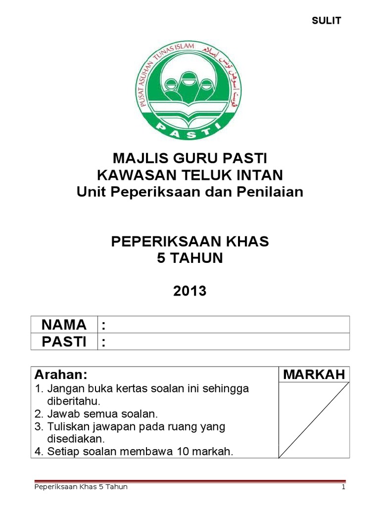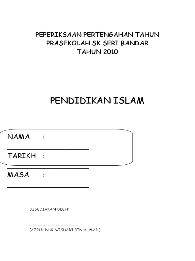 Soalan Peperiksaan Pendidikan Islam Prasekolah Pdf